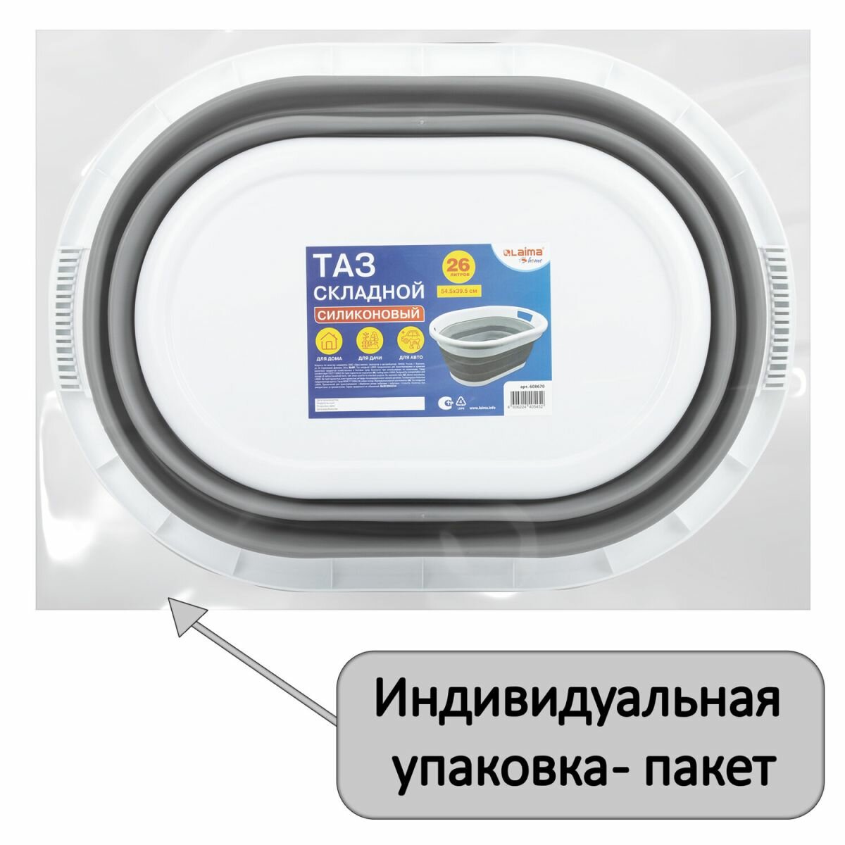 Таз складной силиконовый 26 литров 54,5х39,5 см для дома и дачи, LAIMA Home, 608670 информация: