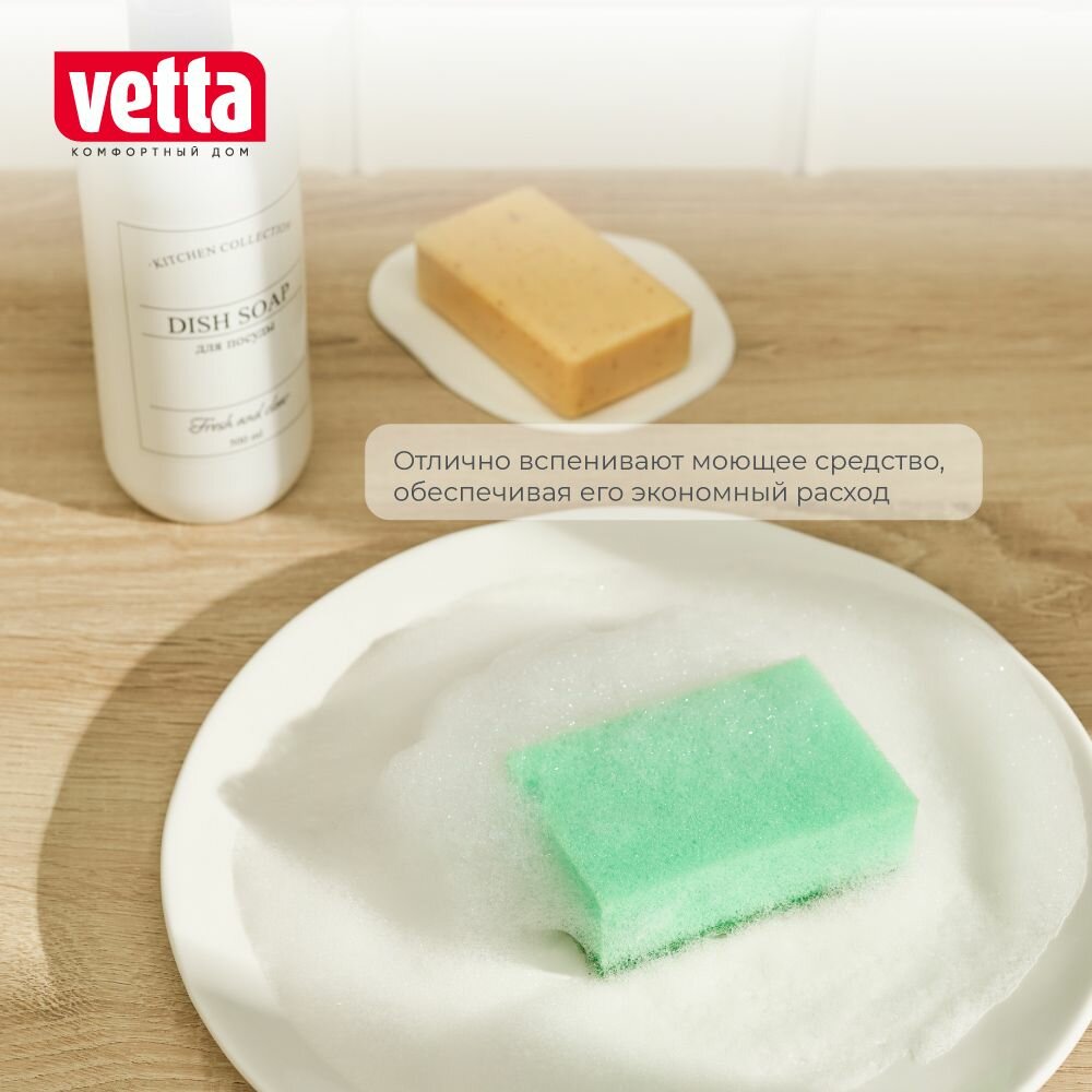 Отзывы на Набор губок для мытья посуды VETTA, 9.6х6.5х3 см, 5 шт, поролон