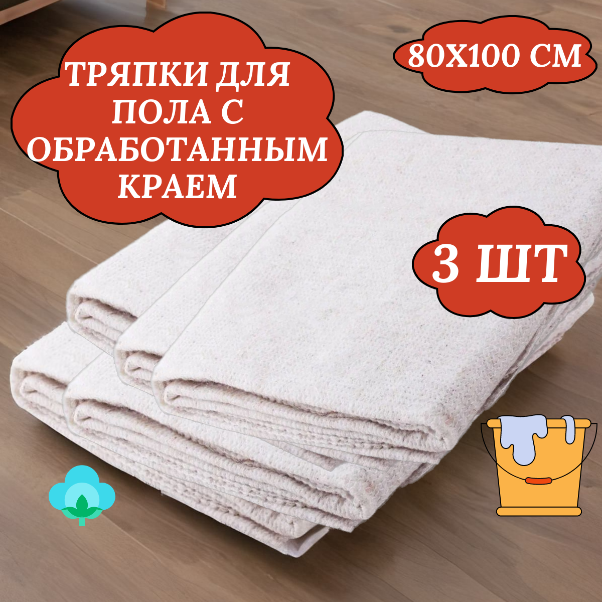 Отзывы на Тряпка для пола 80х100 см, 3 шт, белая оверложенная салфетка для уборки/нетканое полотно/ветошь