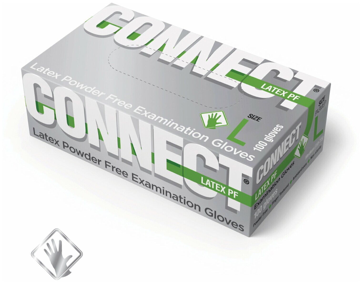 Перчатки смотровые латексные CONNECT, 50 пар (100 штук), размер L (большие), -