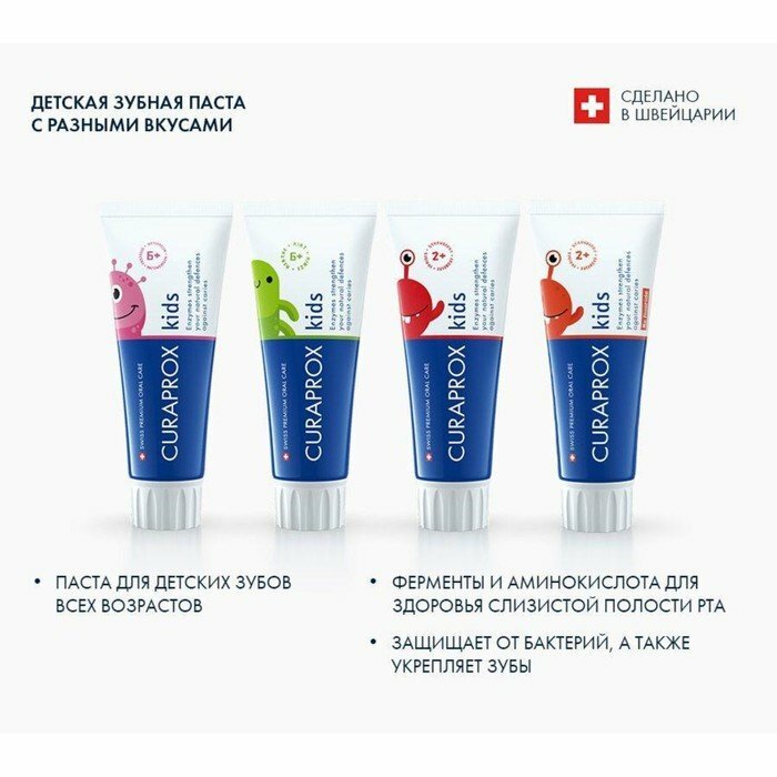 10 цен на Зубная паста Curaprox Kids 950, со вкусом клубники, 60 мл