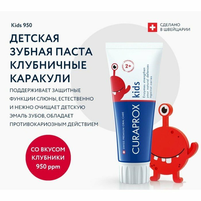 Зубная паста Curaprox Kids 950, со вкусом клубники, 60 мл информация: