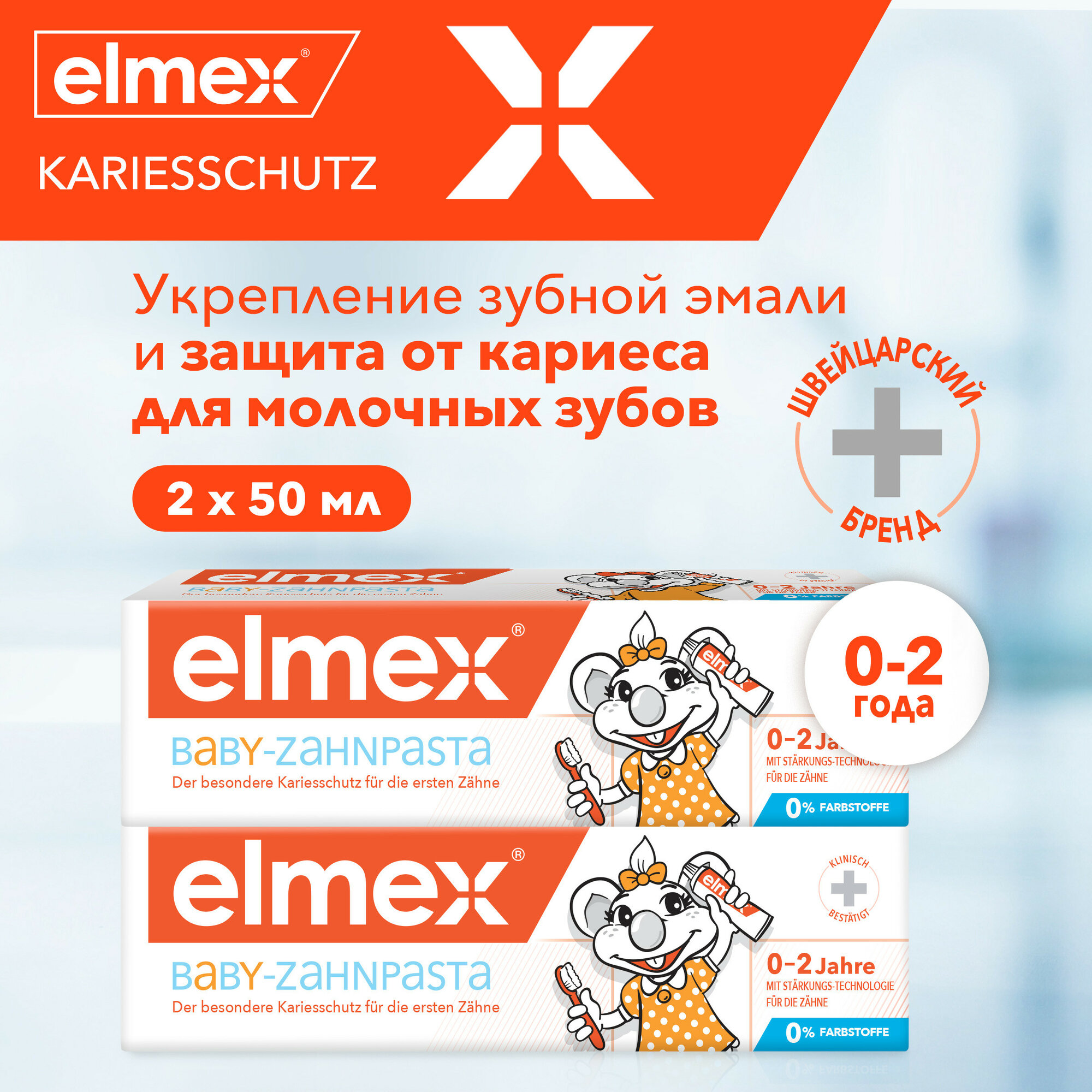 Зубная паста детская Elmex Baby защита от кариеса, для детей от 0 до 2 лет, 50 мл 2шт в наборе информация: