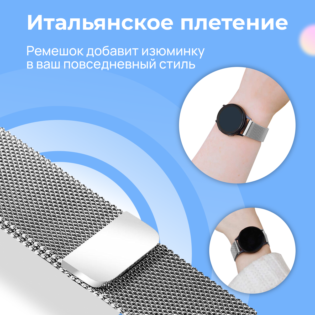 Металлический браслет для часов Samsung Galaxy Watch, Huawei, Honor, Amazfit, Xiaomi, Garmin, Fossil / 22 mm / Ремешок миланская петля / Серебро 335 ₽