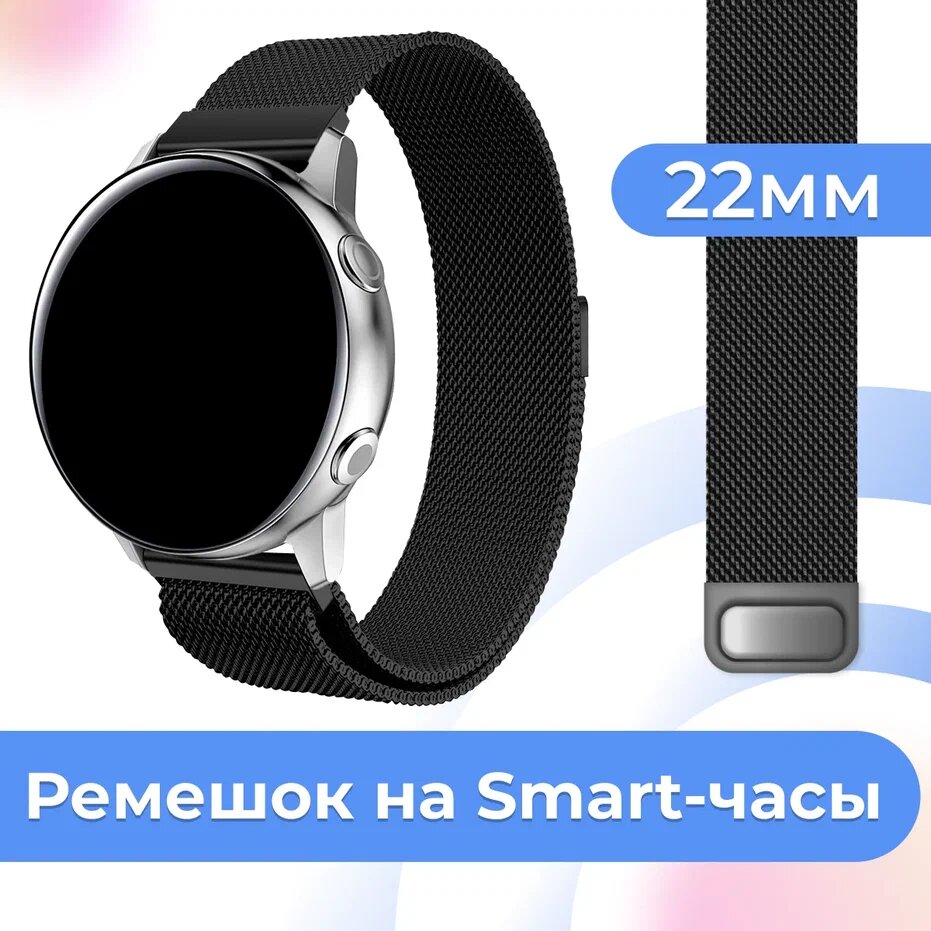 Металлический браслет для часов Samsung Galaxy Watch, Huawei, Honor, Xiaomi, Garmin, Fossil / 22 mm / Ремешок миланская петля / Черный 329 ₽