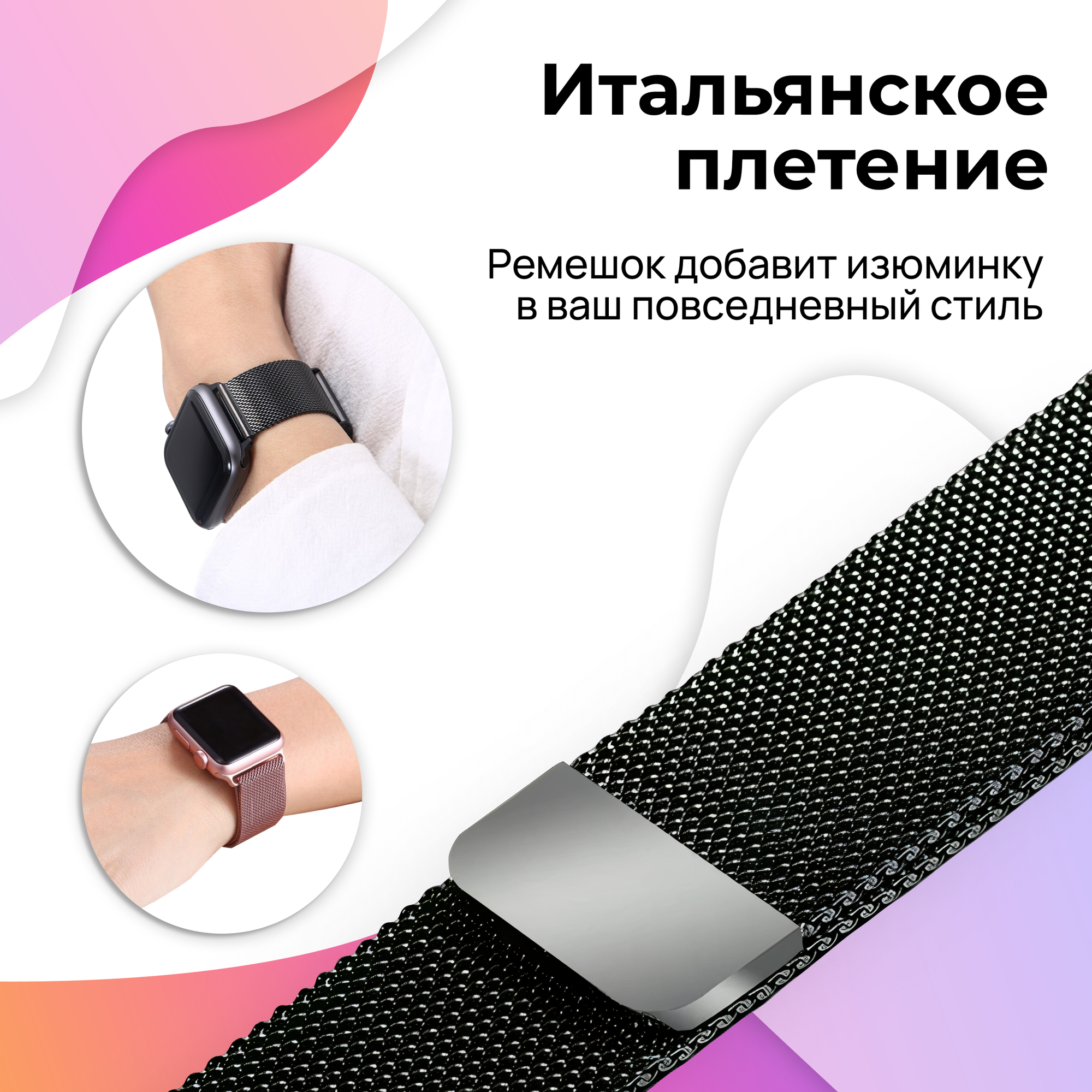 Ремешок миланская петля для Apple Watch 42-44-45-49 mm, Series 1-9, SE, Ultra / Металлический браслет для часов Эпл Вотч 42-49 мм / Розовый 399 ₽