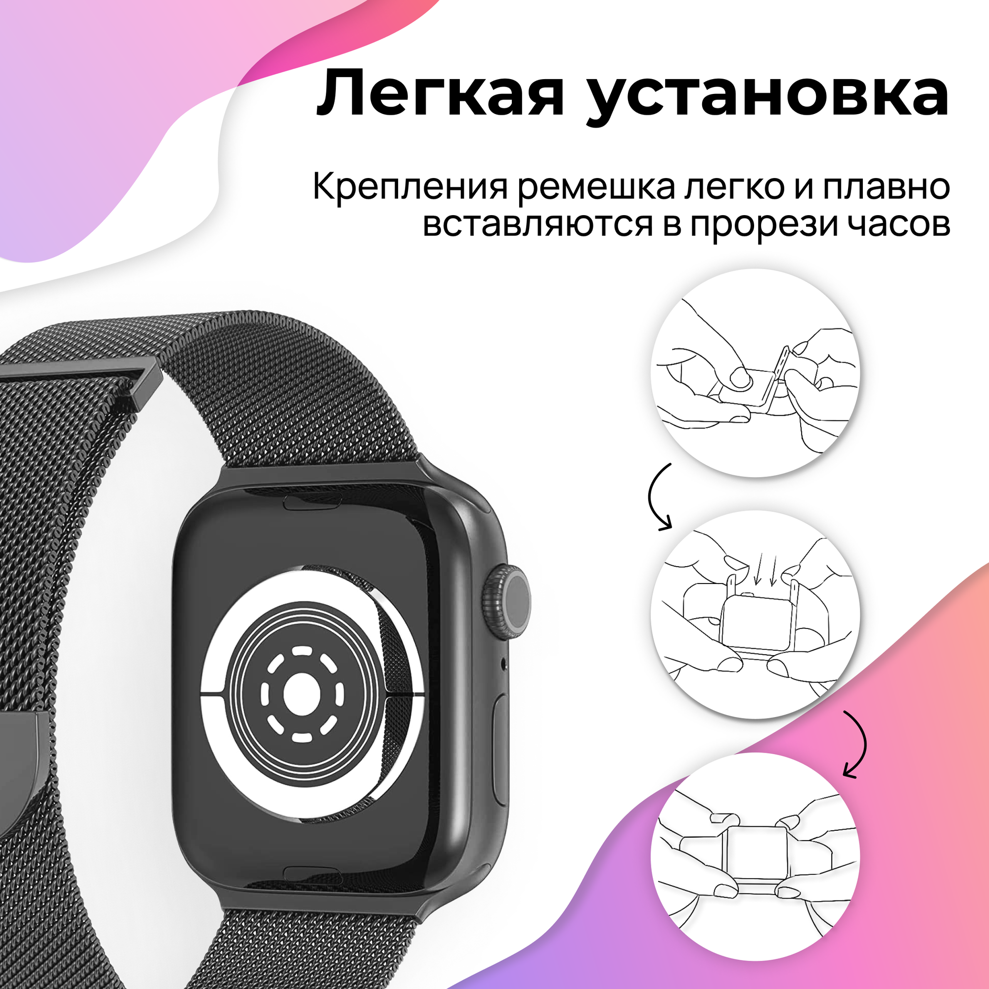 Ремешок миланская петля для Apple Watch 42-44-45-49 mm, Series 1-9, SE, Ultra / Металлический браслет для часов Эпл Вотч 42-49 мм / Черный 388 ₽