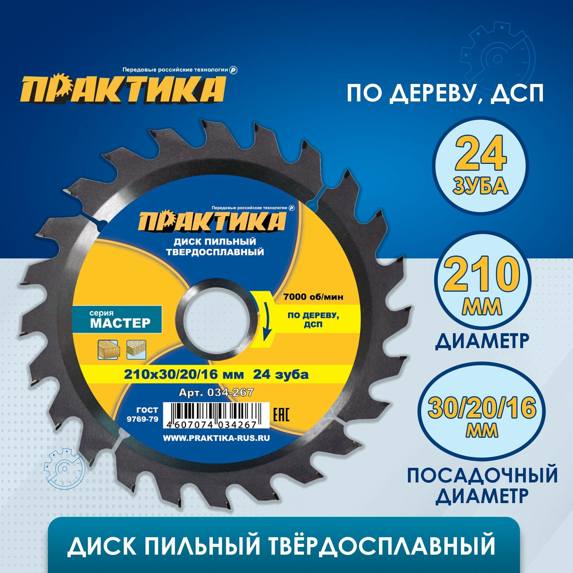 10 цен на Диск пильный твердосплавный по дереву, ДСП ПРАКТИКА 210 х 30-20-16 мм, 24 зуба