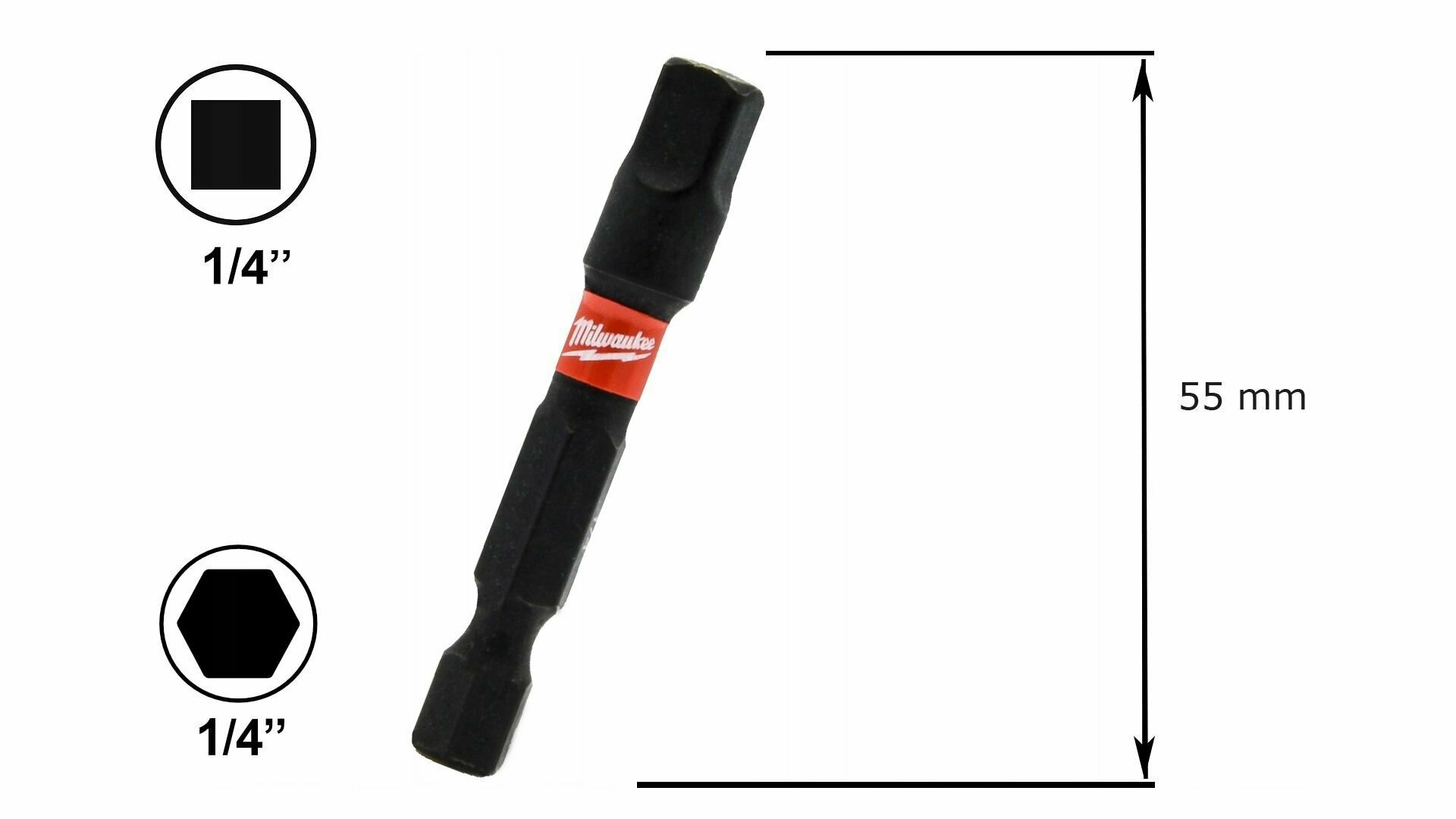 Переходник с 1/4"HEX на 1/4"квадратный хвостовик MILWAUKEE информация: