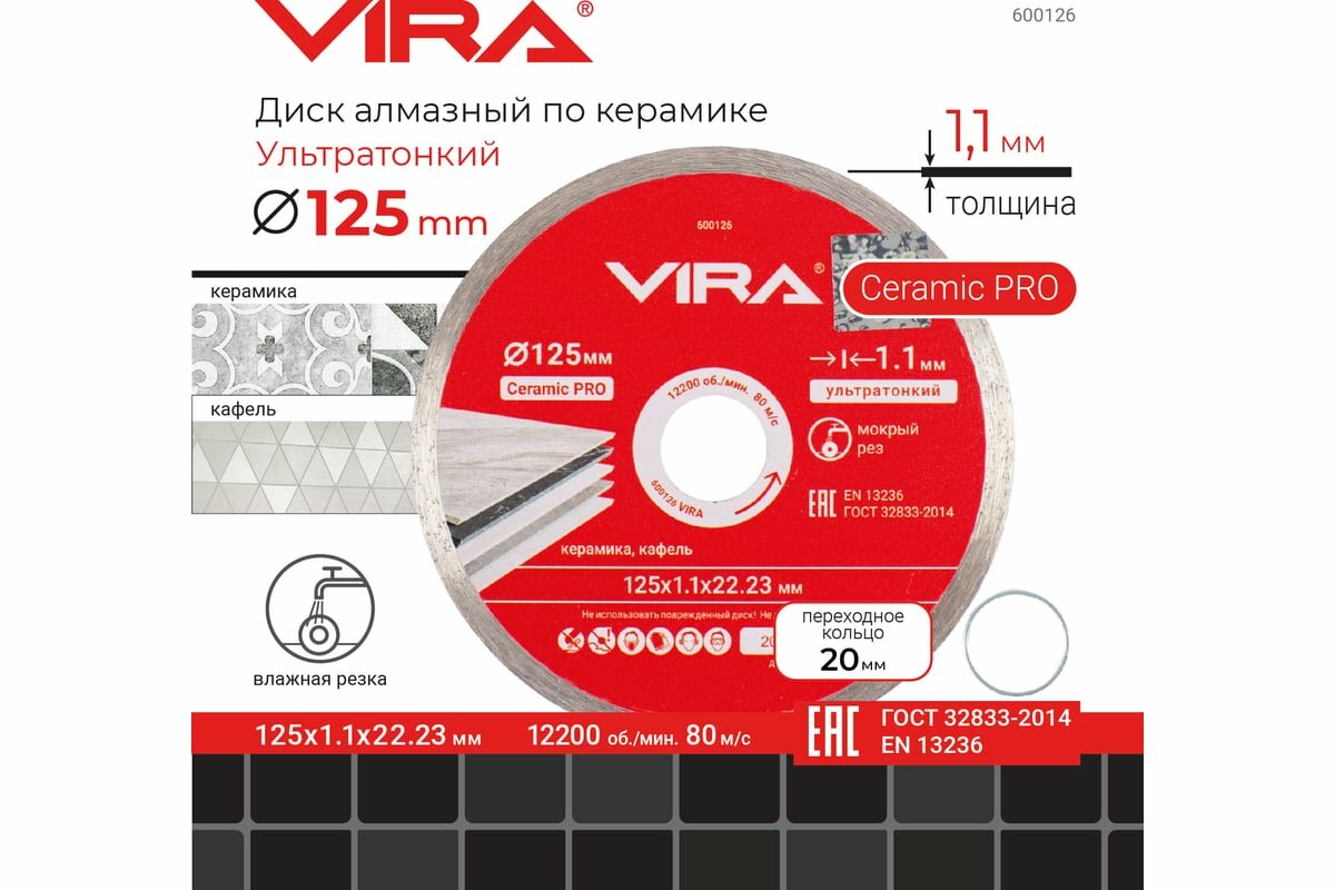 VIRA Диск алмазный по керамике сплошной ультратонкий 125 мм 600126 информация: