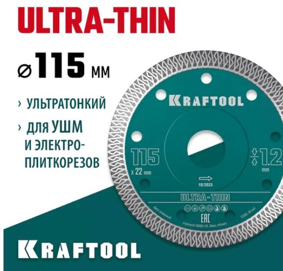 Диск алмазный ультратонкий, KRAFTOOL ULTRA-THIN 115х1.2 мм 1 356 ₽