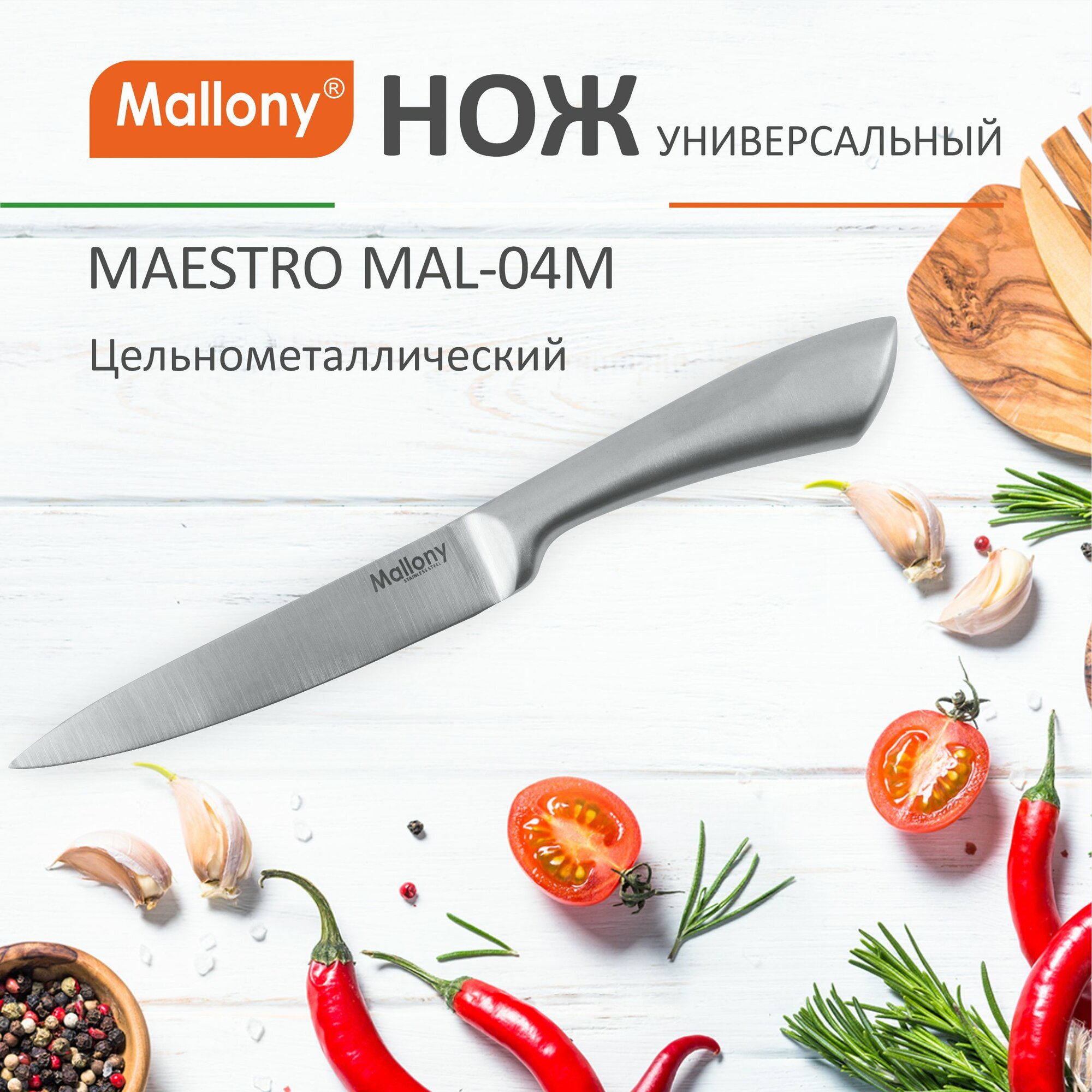 Нож универс. Mallony MAESTRO MAL-04M, лезвие 12,5см, цельнометаллич. 920234 информация:
