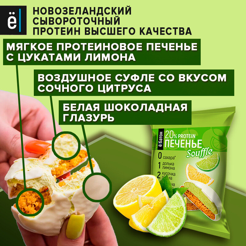 Протеиновое печенье ё|батон с белковым суфле, без сахара и муки , 4 шт по 50 г Лимон-Лайм 479 ₽