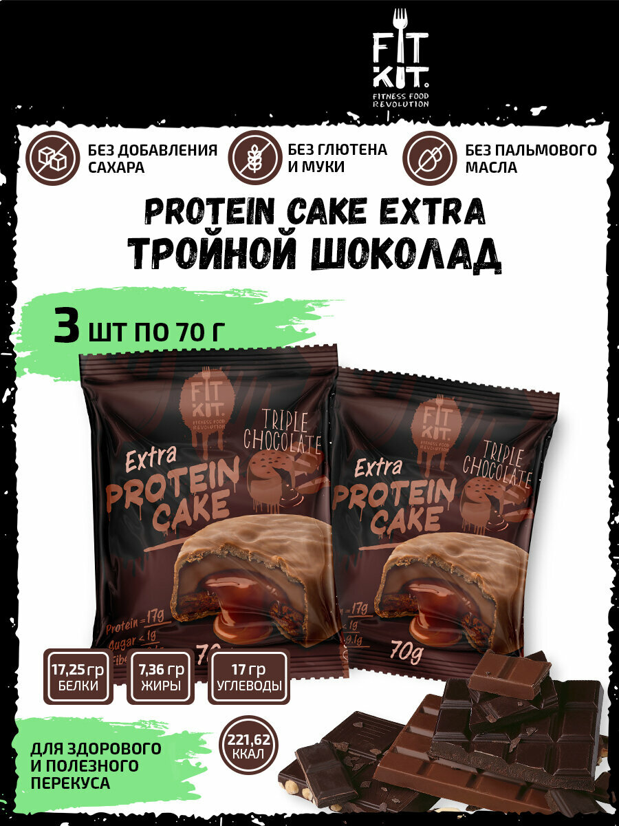 10 цен на Протеиновое печенье с суфле без сахара Fit Kit Protein Cake EXTRA, 3шт x 70г (Тройной шоколад)