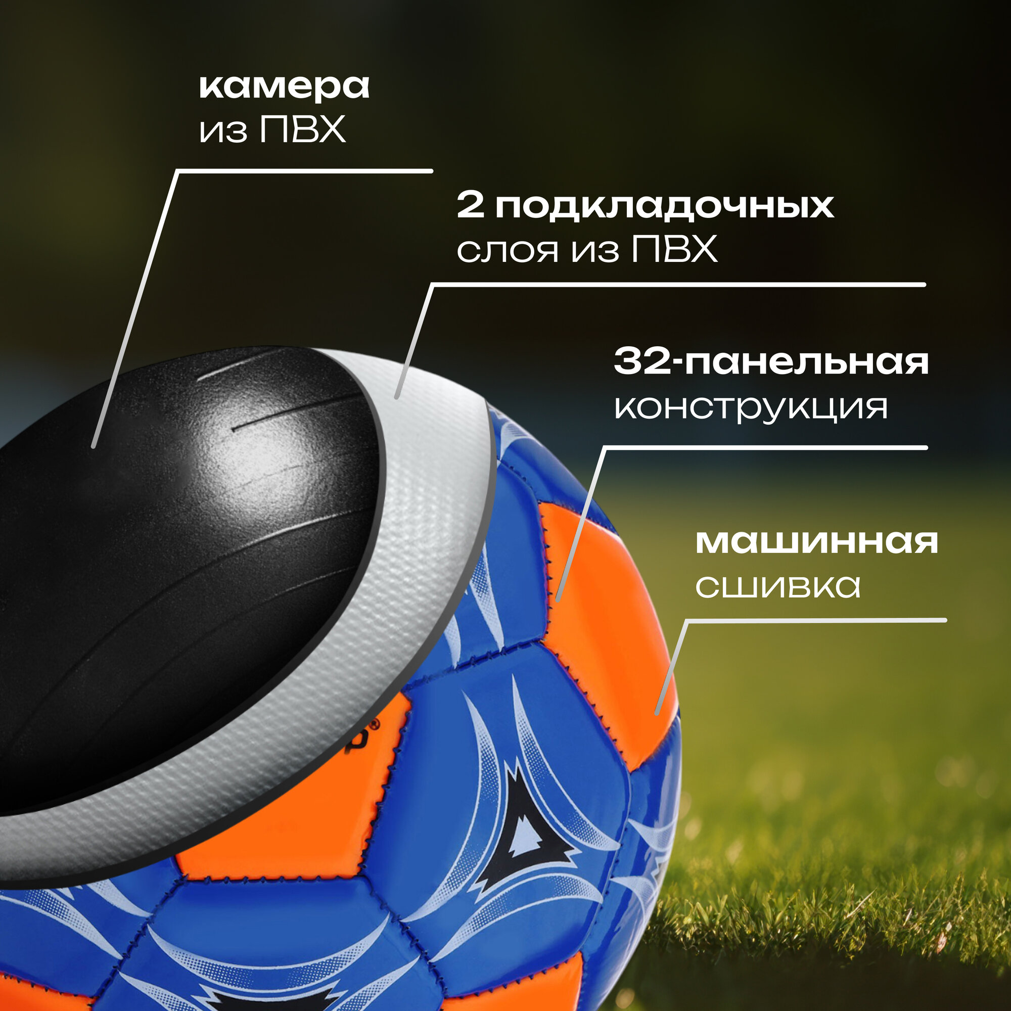Мяч футбольный Meik-036 Replica Krasava, 4-слоя, TPU+PVC 3.2, 410-450 гр. маш. сшивка Спортекс D33049