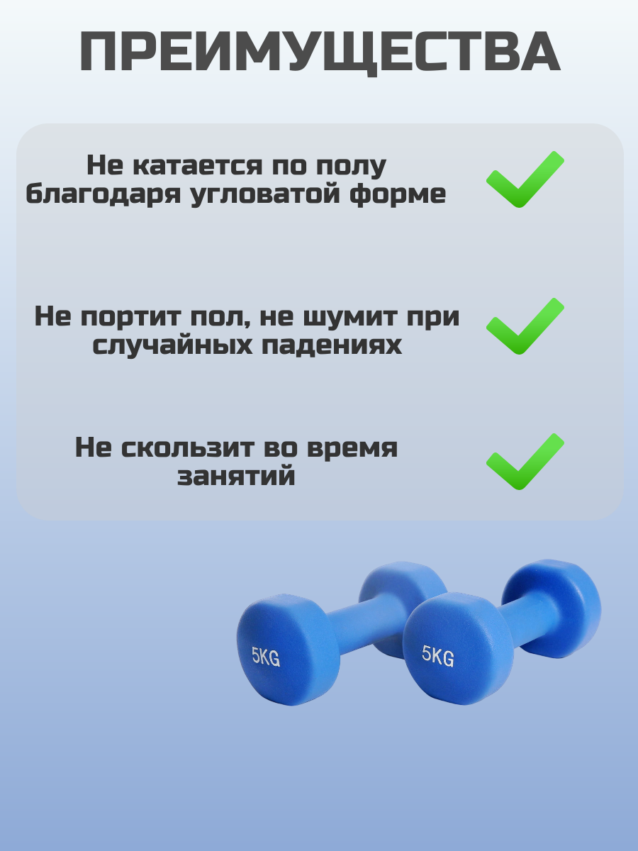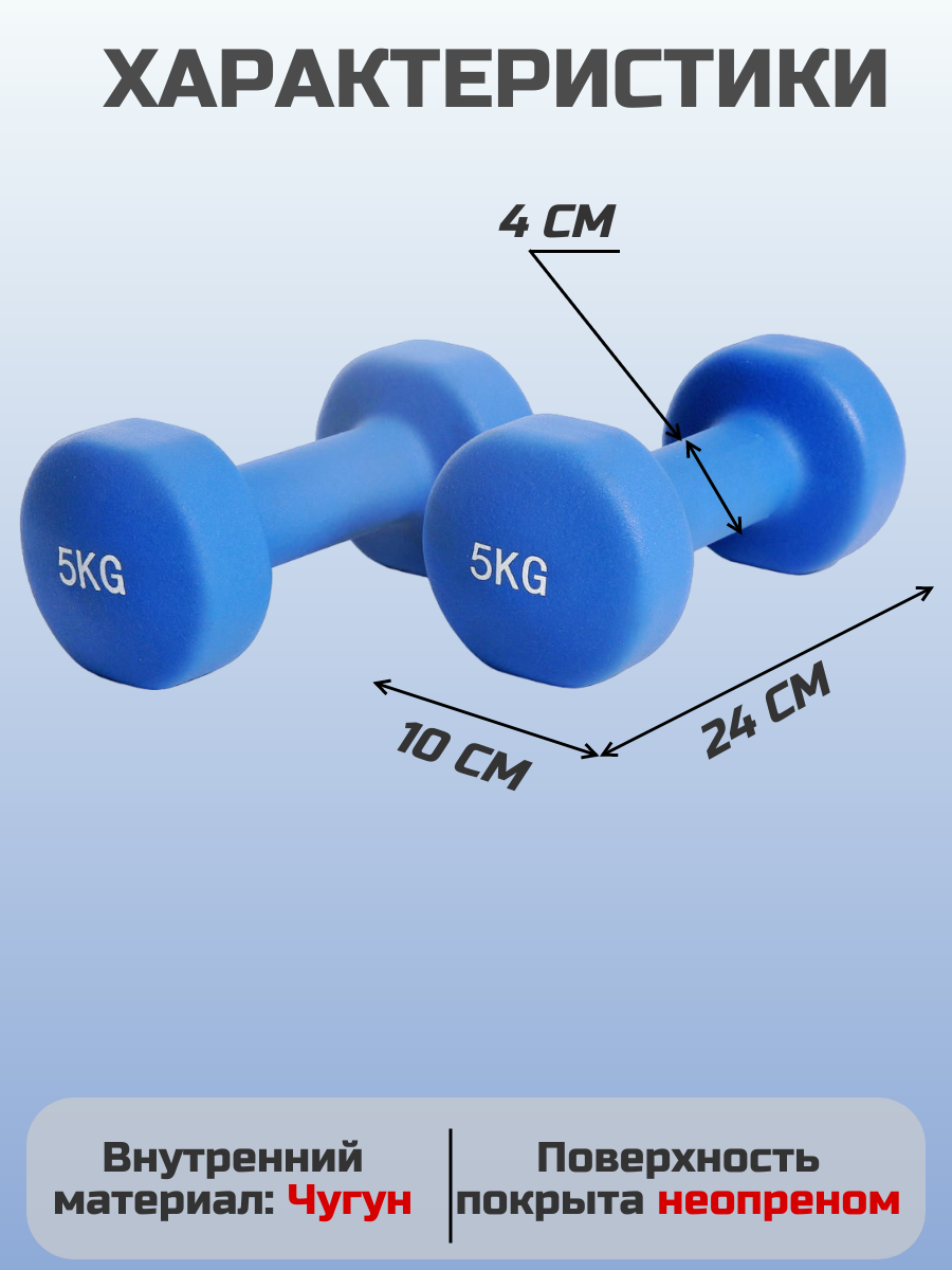 Гантели для фитнеса неопреновые Summus 2 шт. по 5 кг женские, мужские для дома и зала, для детей, синий, арт. 500-105 информация: