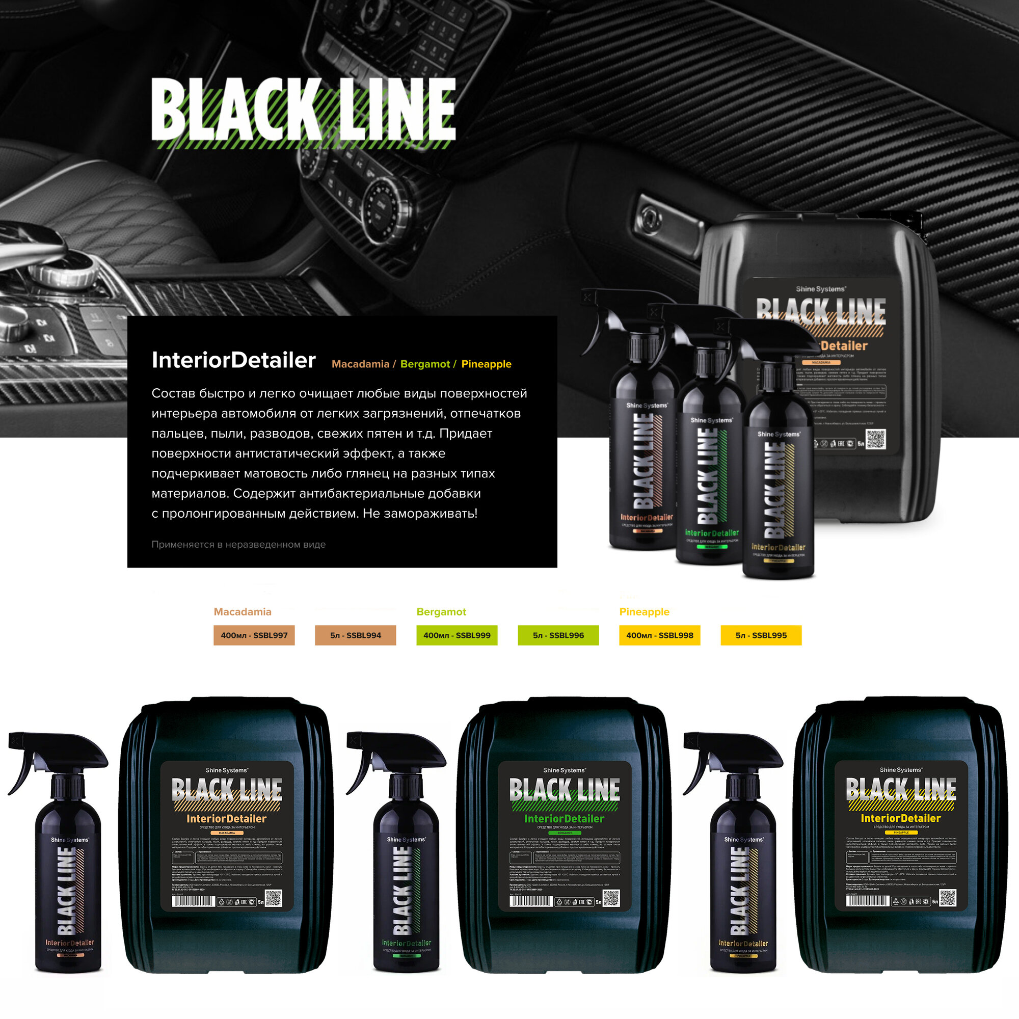 InteriorDetailer Bergamot - средство для ухода за интерьером Shine Systems Black Line, 400 мл 450 ₽
