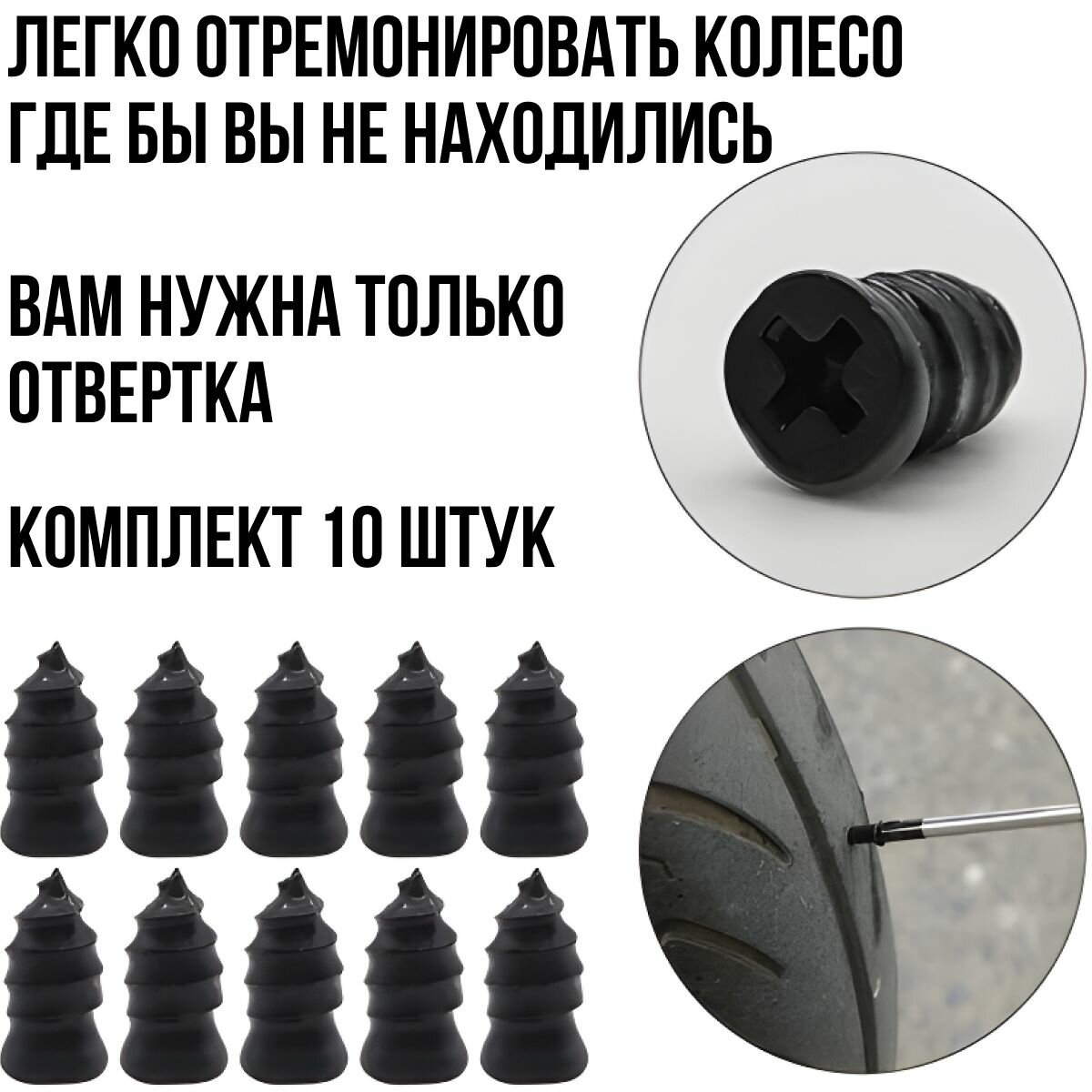 Отзывы на Набор для ремонта бескамерных шин, ремкомплект для шин авто, резиновые шурупы 10 шт, в коробочке 12.7мм