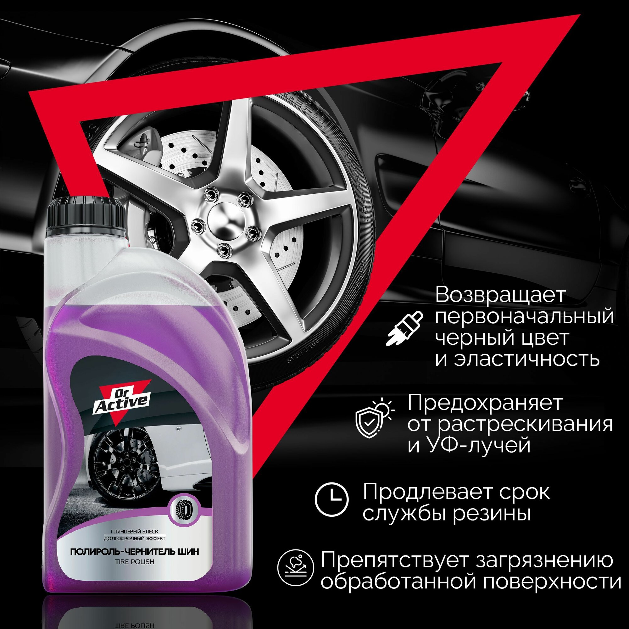Отзывы на Чернитель для шин Dr. Active "Tire Polish", чернитель резины на основе глицерина, концентрат 1 л
