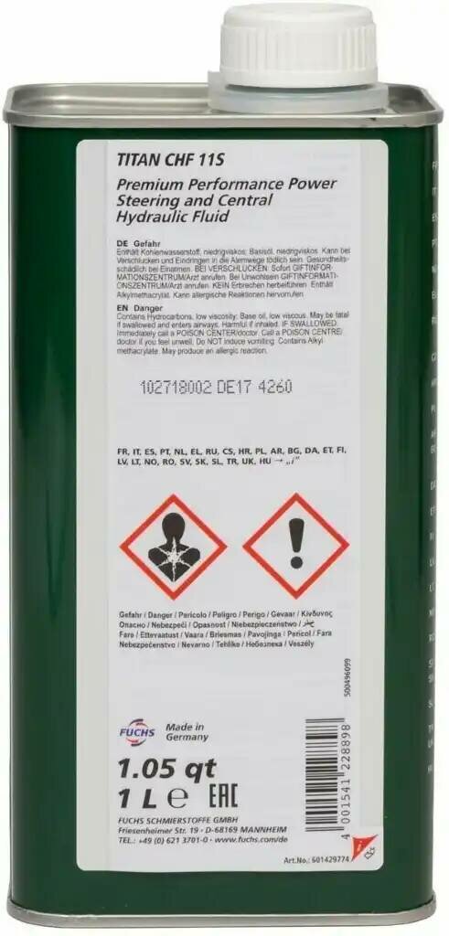 Жидкость Гур Titan Fuchs Formerly Pentosin CHF 11s 1л 83290429576 FUCHS арт. 4008849503016 информация: