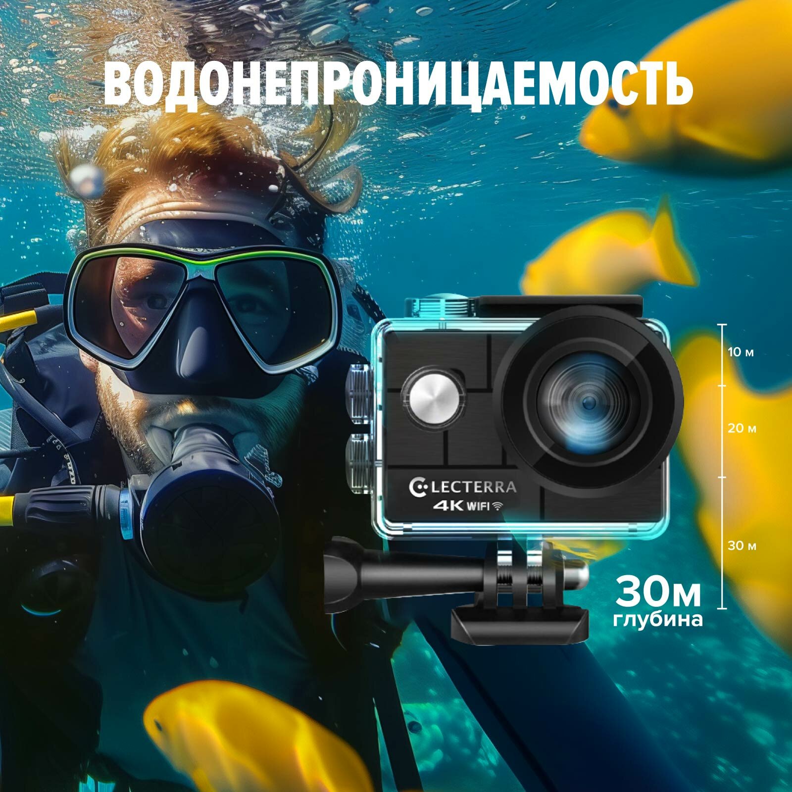 Экшн-камера Electerra 4K UHD, с Wi-Fi. Экшен камера 4K для активного отдыха и подводной съемки информация: