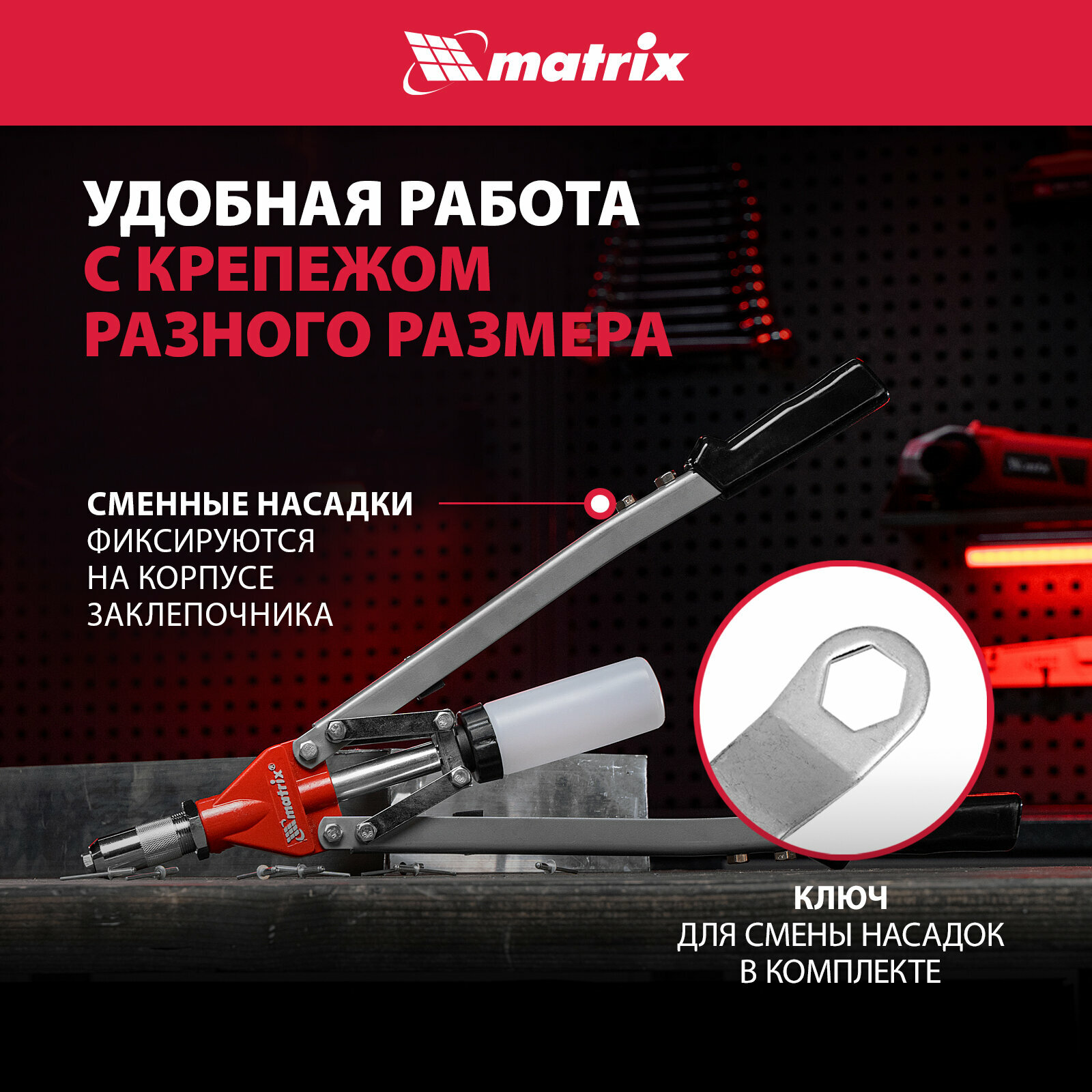 10 цен на Заклепочник двуручный Matrix для заклепок 3, 2-4, 0-4, 8-6, 0-6, 4мм 40535