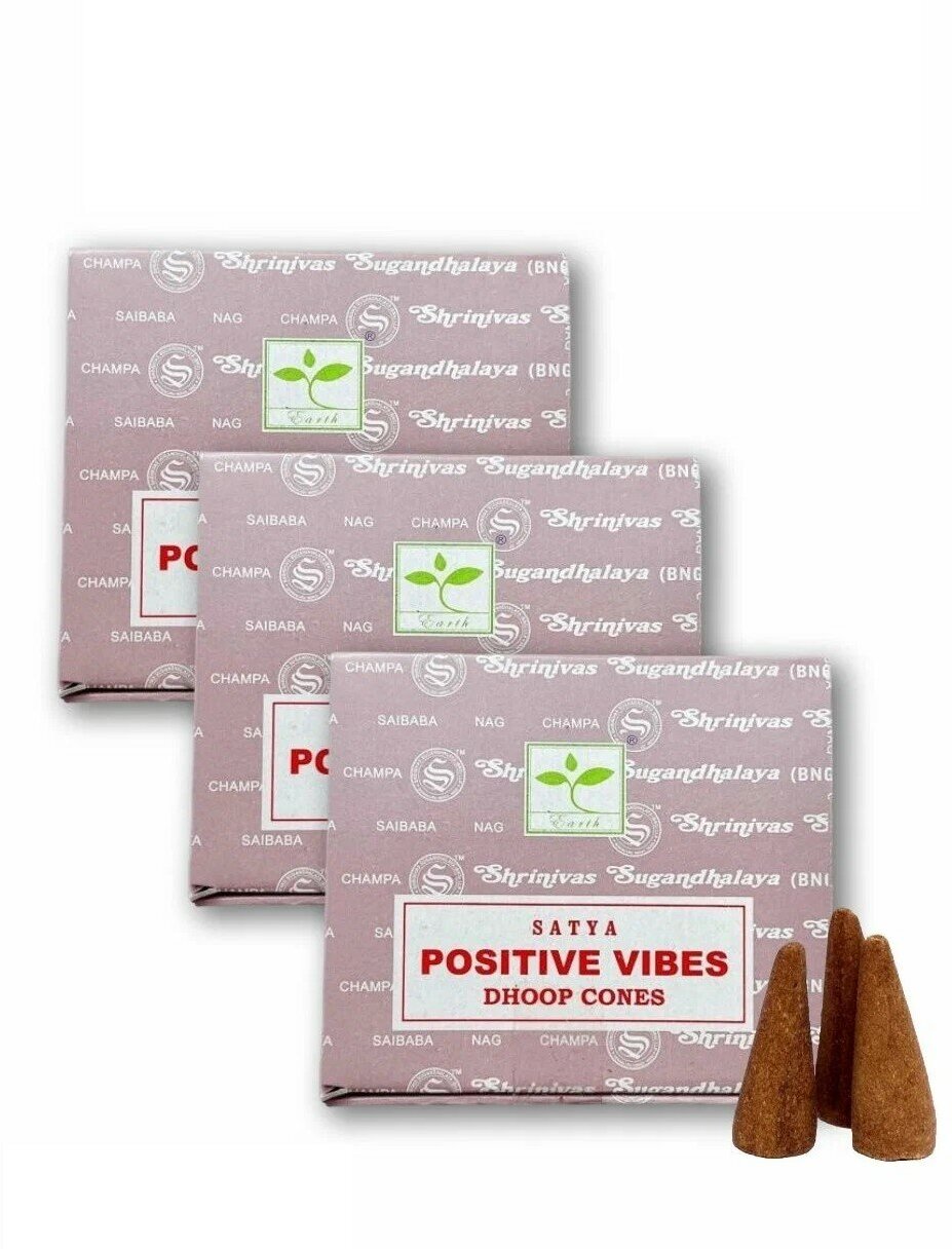 Набор Satya Волны позитива - 3 упаковки по 12 шт - ароматические благовония, конусовидные, конусы с подставкой, Positive Vibe - Сатия, Сатья информация: