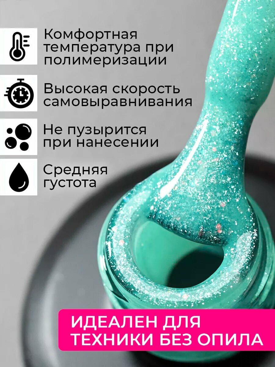 Жидкий полигель для укрепления и наращивания ногтей шиммер серебристо-зеленый, зеленая мята, 15 мл информация: