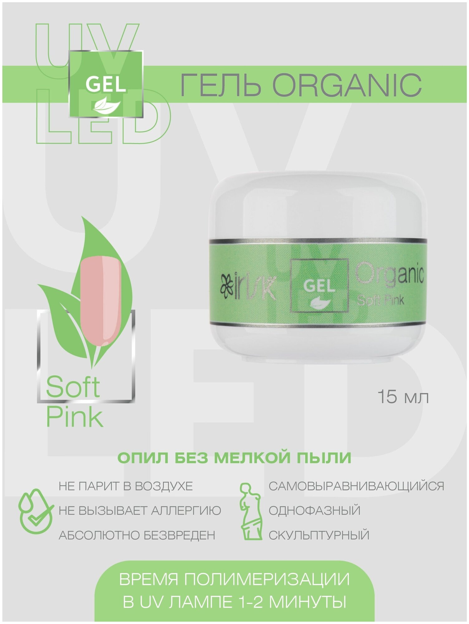 Гель универсальный для наращивания моделирования ногтей Irisk Organic Soft Pink розовый, 15 мл.