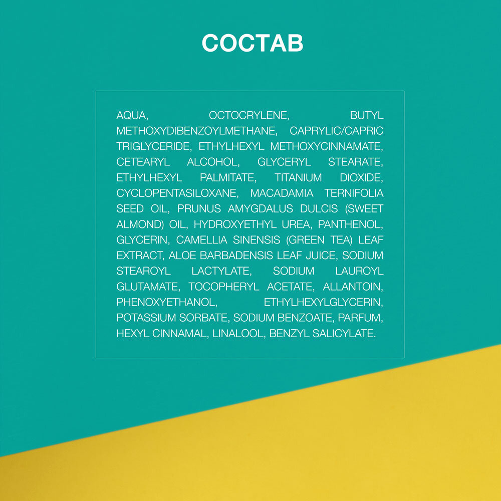 | Состав | AQUA, OCTOCRYLENE, BUTYL METHOXYDIBENZOYLMETHANE, CAPRYLIC/CAPRIC TRIGLYCERIDE, ETHYLHEXYL METHOXYCINNAMATE, CETEARYL ALCOHOL, ETHYLHEXYL PALMITATE, GLYCERYL STEARATE, CYCLOPENTASILOXANE, MACADAMIA TERNIFOLIA SEED OIL, PRUNUS AMYGDALUS DULCIS (SWEET ALMOND) OIL, HYDROXYETHYL UREA, PANTHENOL, GLYCERIN, CAMELLIA SINENSIS (GREEN TEA) LEAF EXTRACT, ALOE BARBADENSIS LEAF JUICE, SODIUM STEAROYL LACTYLATE, SODIUM LAUROYL GLUTAMATE, TOCOPHERYL ACETATE, ALLANTOIN, PHENOXYETHANOL, ETHYLHEXYLGLYCERIN, POTASSIUM SORBATE, SODIUM BENZOATE, PARFUM, HEXYL CINNAMAL, LINALOOL, BENZYL SALICYLATE, CI 77891. |