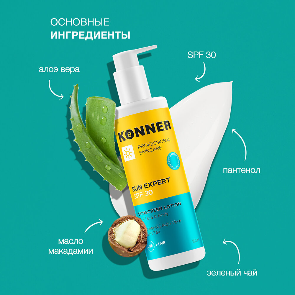 KONNER Солнцезащитный крем для лица и тела SPF 30, для загара на солнце, увлажняющий с пантенолом, 150 мл информация: