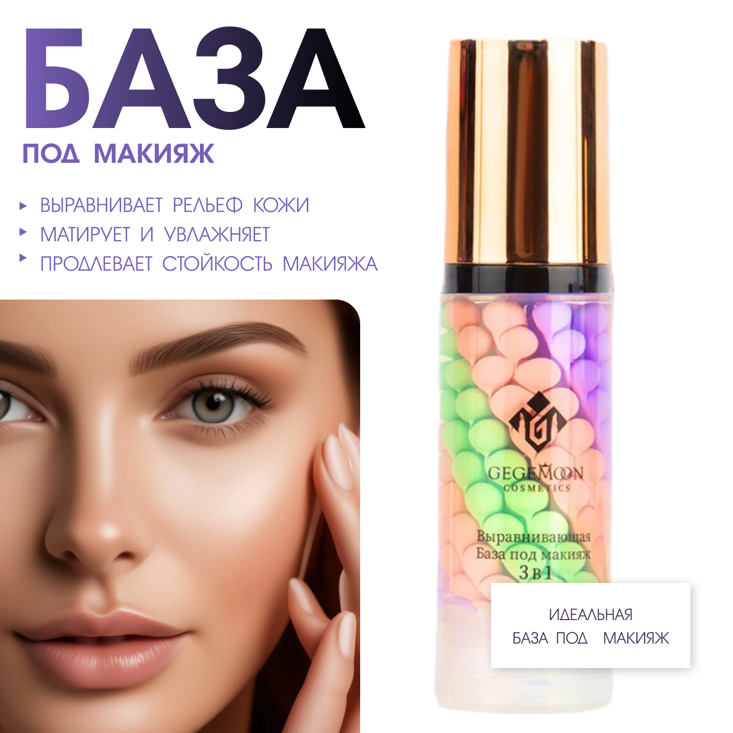 Основа база под макияж Gegemoon 4 в 1, трехцветная матирующая увлажняющая осветляющая 40мл информация: