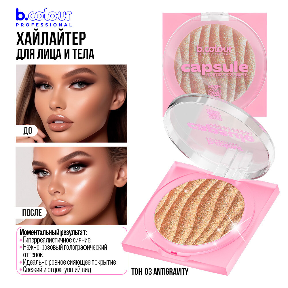 B.COLOUR PROFESSIONAL Хайлайтер для лица, хайлайтер для тела сияющий, сухой, с легкой муссовой текстурой, CAPSULE 03 ANTIGRAVITY 567 ₽