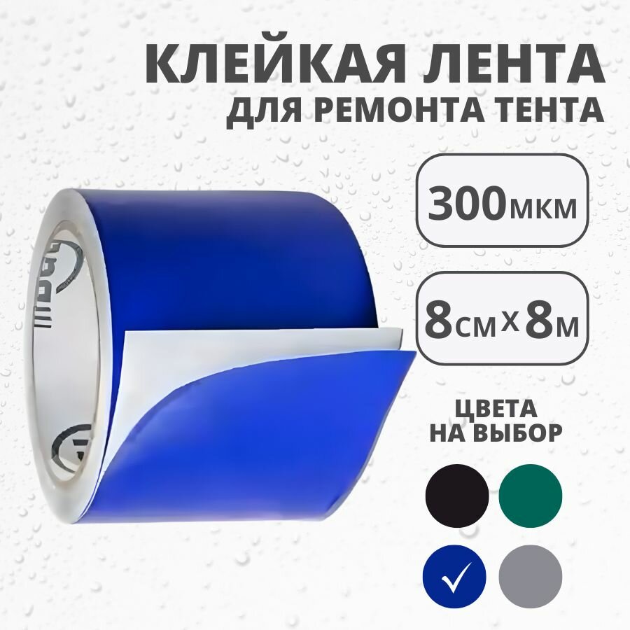 Клейкая лента для ремонта тарпаулинового тента 8 см х 8 м скотч синий 590 ₽