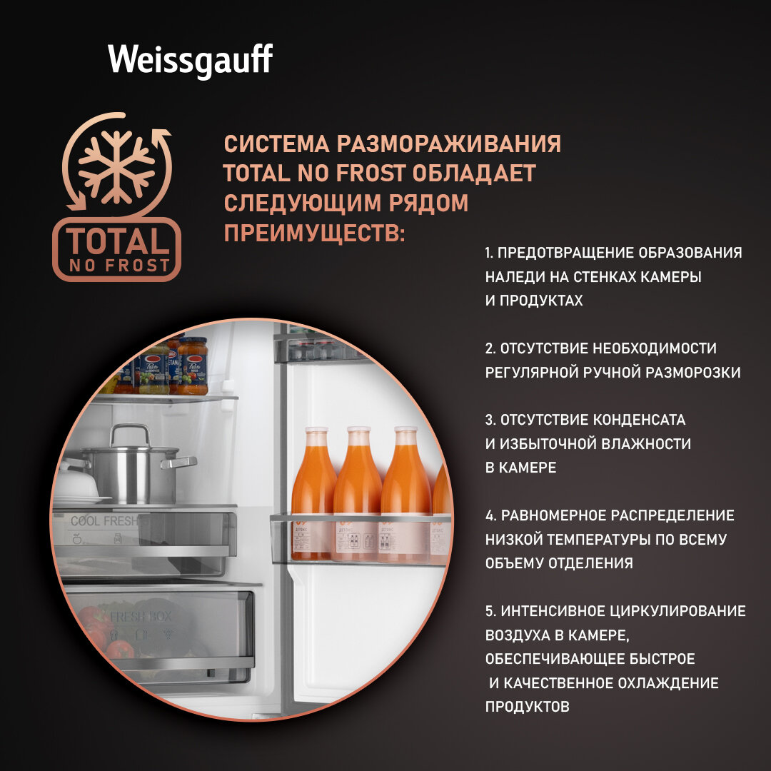 10 цен на Холодильник Weissgauff WRK 195 D Full NoFrost Inox Glass двухкамерный, стеклянный фасад