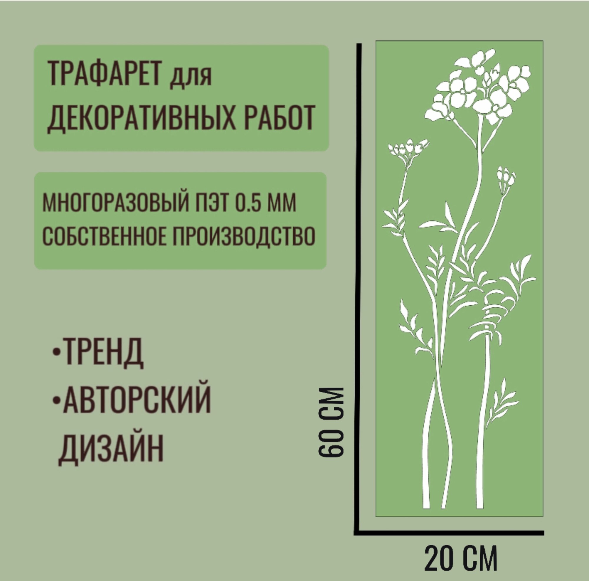 Отзывы на Трафарет для декора и стен - серия "трава" №7 толщина ПЭТ - 0,5 мм размер 60х20 см для штукатурки и краски