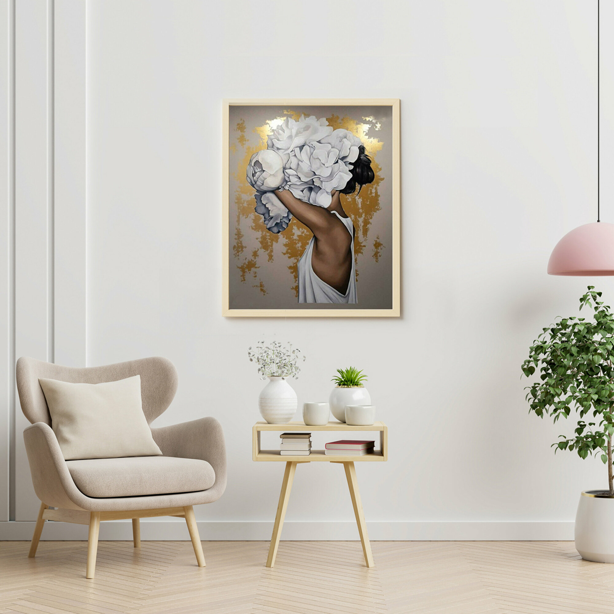 Отзывы на Картина по номерам с поталью (40х50) Девушка с пионами (17 цветов) HR0385