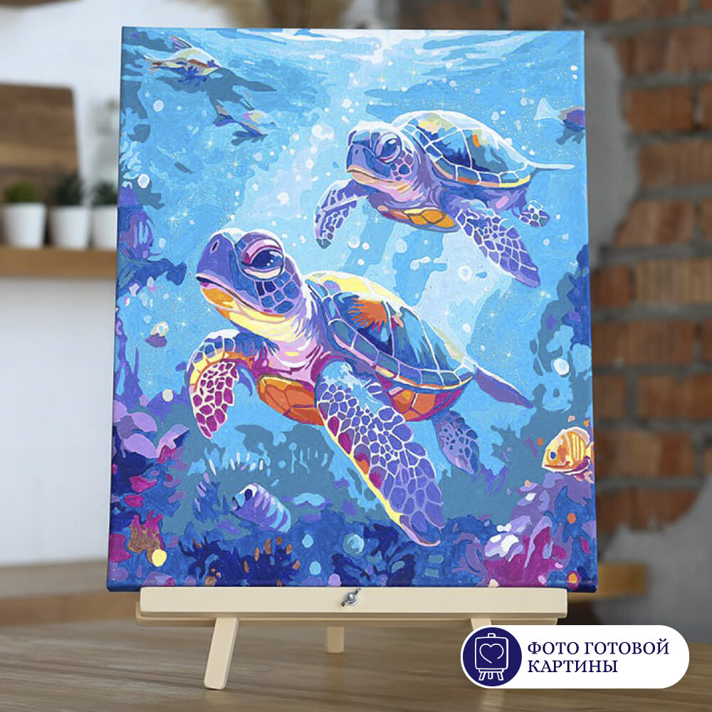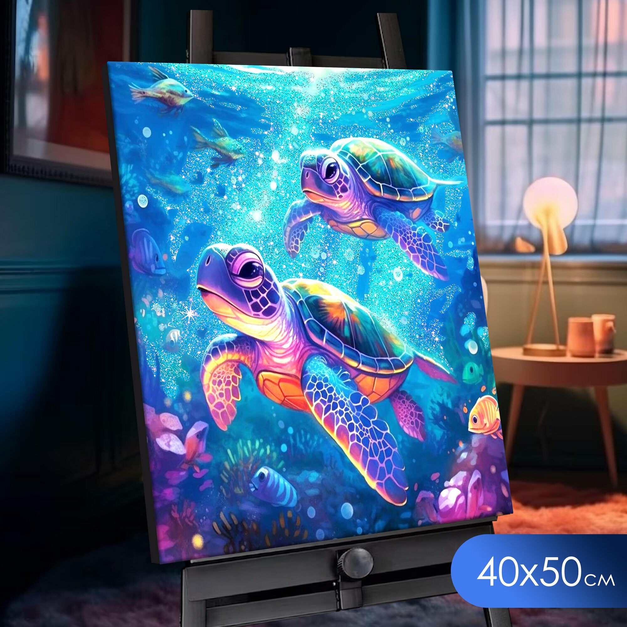 Картина по номерам с кристаллами Флюид на холсте с подрамником "Морские черепахи" Раскраска 40x50 см, Морская тематика Подводный мир 2 100 ₽