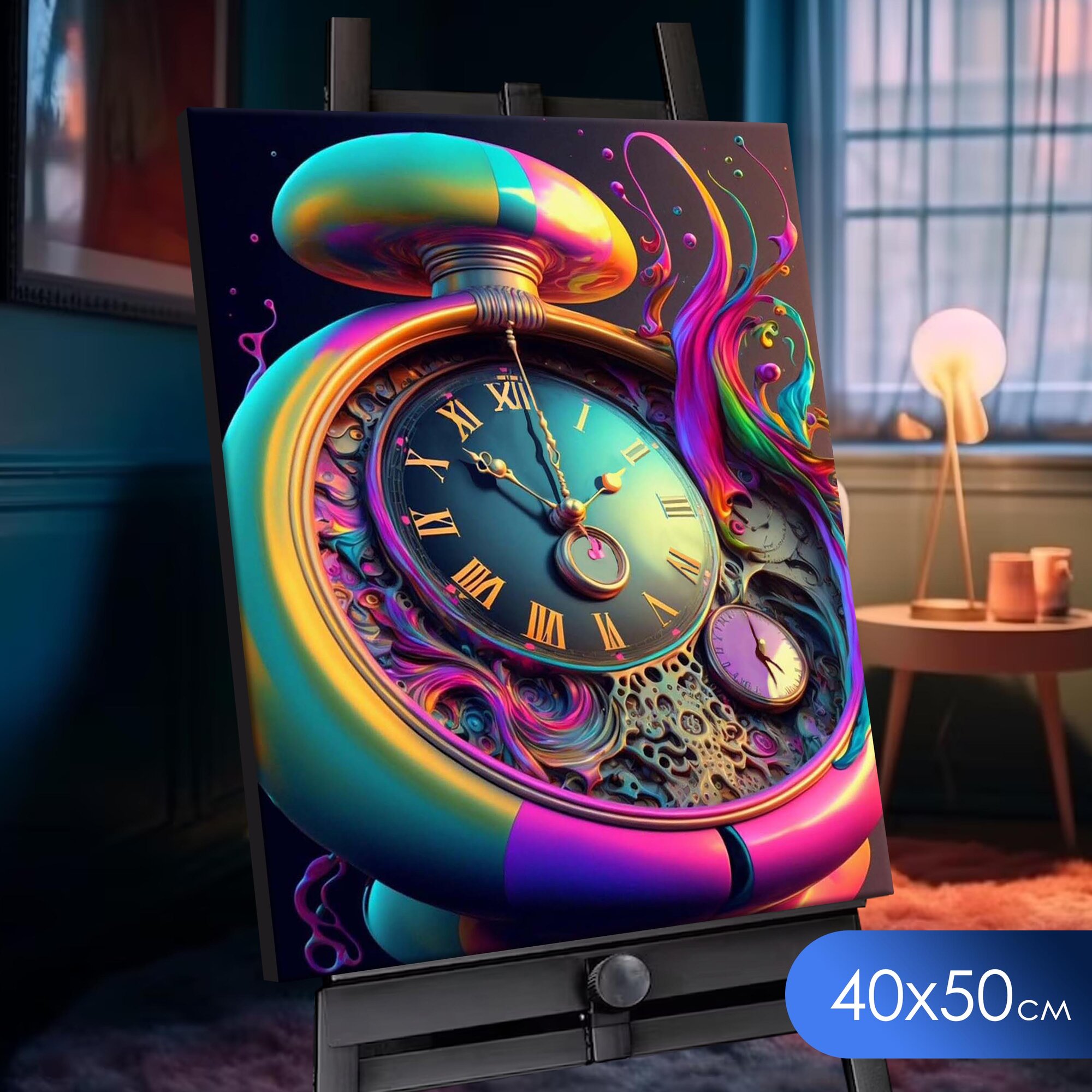 Картина по номерам с кристаллами Флюид на холсте с подрамником "Радужные часы" Раскраска 40x50 см, Буквы и цифры Абстракция 2 100 ₽