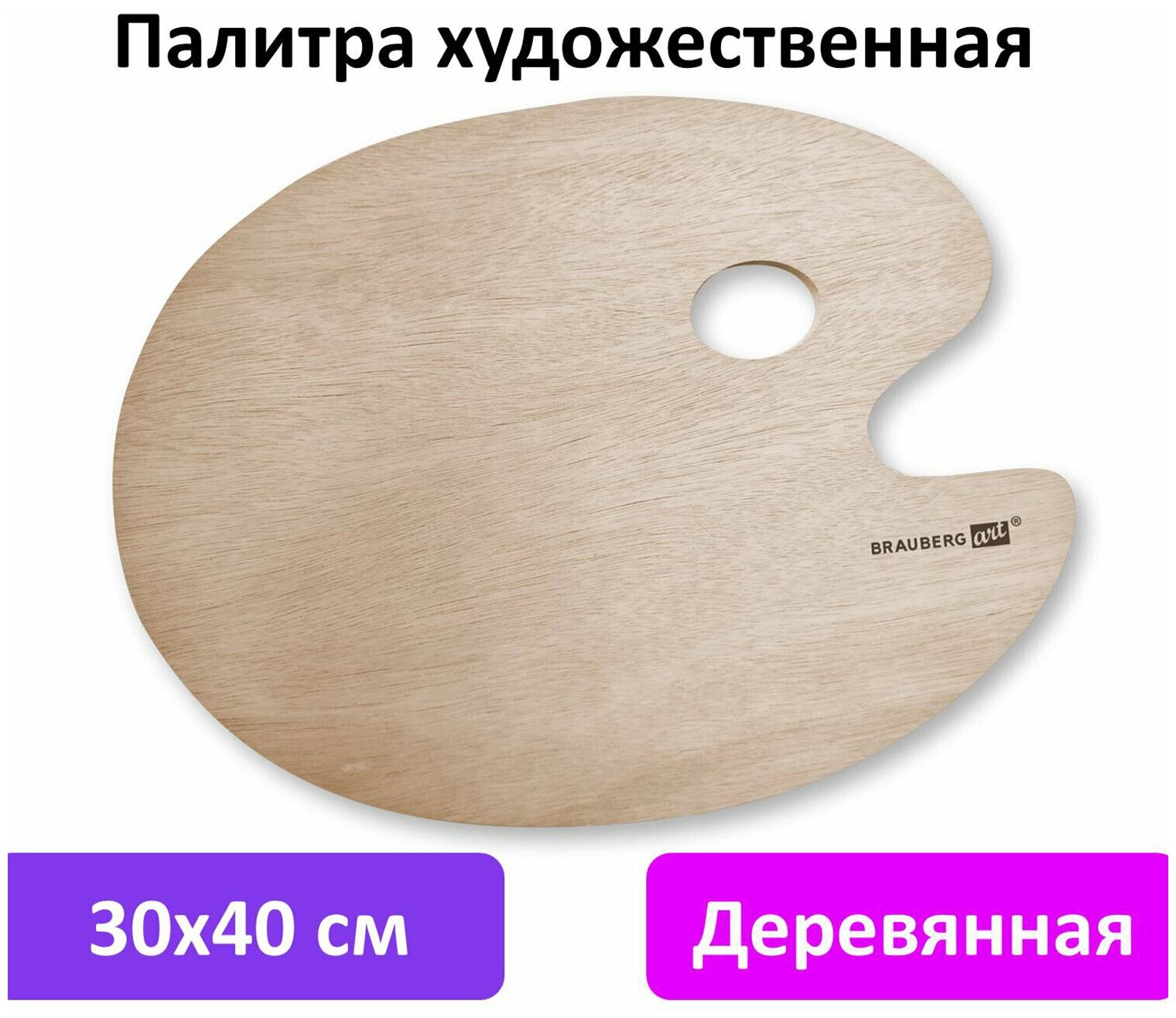 Палитра для акварели и смешивания красок деревянная овальная 30х40 см, Brauberg Art Classic, 192233 информация: