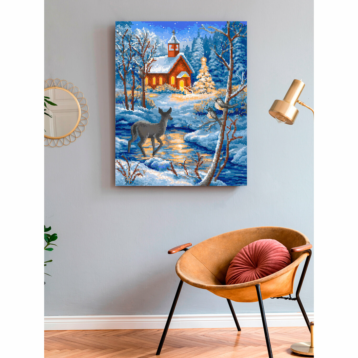 10 цен на Алмазная мозаика на подрамнике 40х50 см Рождественский пейзаж. Алмазная вышивка. Картина стразами