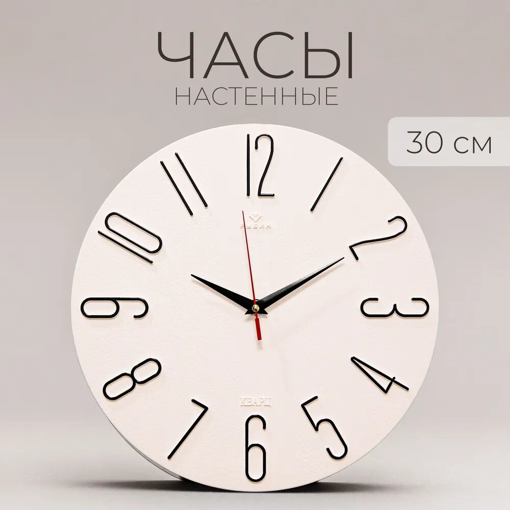 10 цен на Часы настенные большие Рубин бесшумные, d 30 см белые Классика