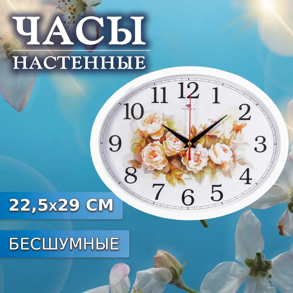 10 цен на Часы настенные овал 22,5х29см, корпус белый "Цветы, пастель" "Рубин"