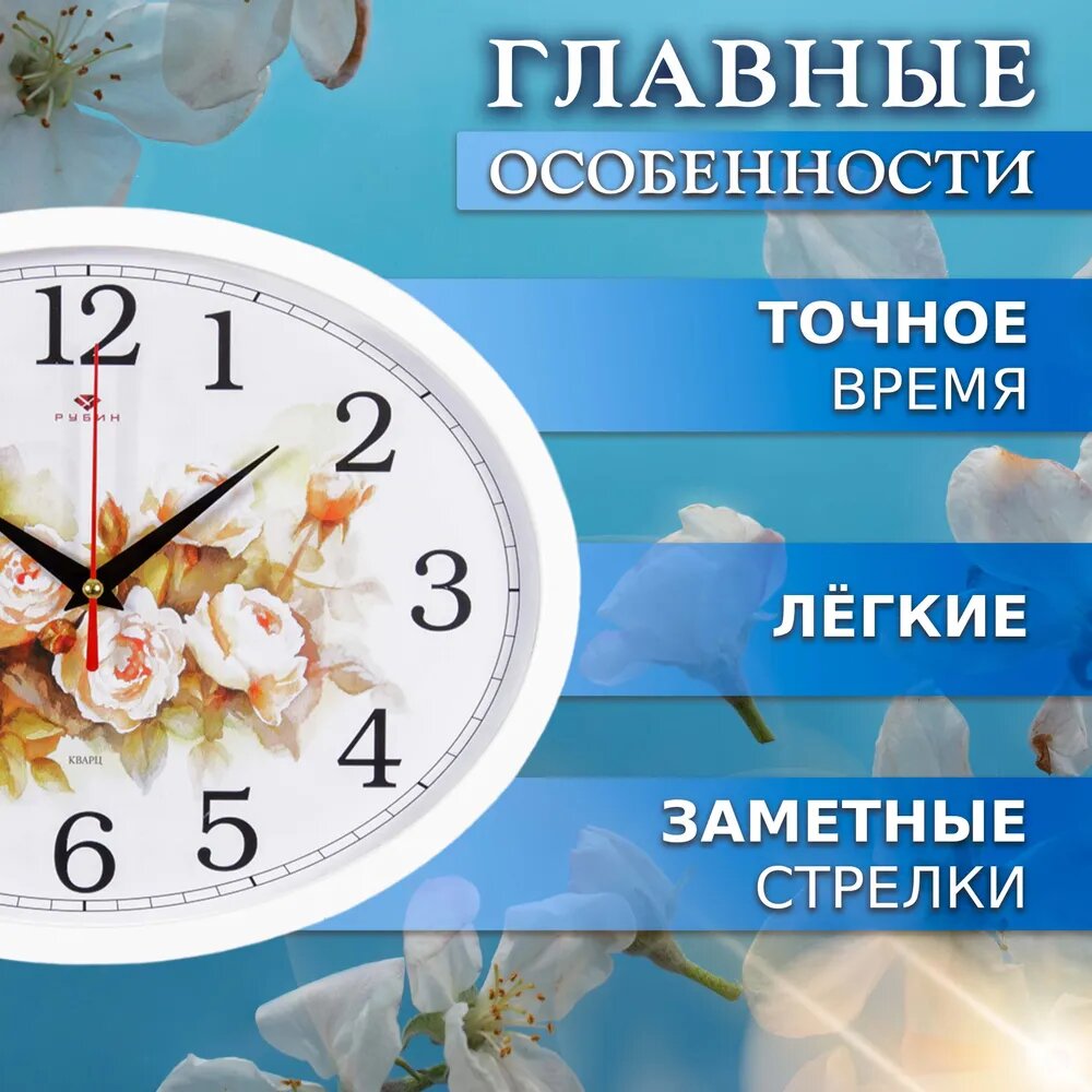 Часы настенные овал 22,5х29см, корпус белый "Цветы, пастель" "Рубин" информация: