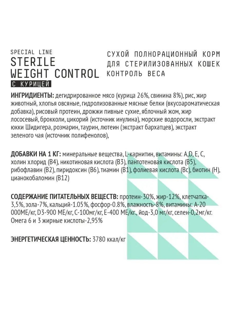| Особые потребности | беззерновой / гипоаллергенный / для беременных / кормящих кошек / для вывода шерсти / для живущих в помещении / для живущих на улице / для здоровья кожи и блеска шерсти / для здоровья костей и суставов / для профилактики стресса / для снижения запаха стула / для стерилизованных/кастрированных / при диабете / при чувствительном пищеварении / профилактика МКБ / профилактика зубного камня / профилактика избыточного веса |