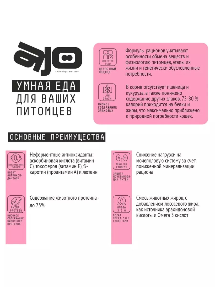 AJO для стерилизованных кошек с высоким содержанием белка, 1.5 кг. 1 686 ₽