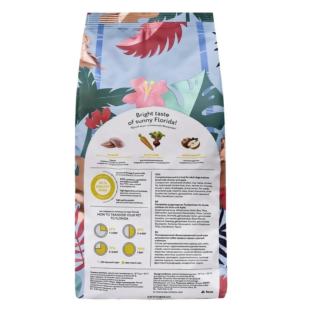 Сухой корм FLORIDA для взрослых собак средних пород с курицей и яблоком, Medium Adult Chicken, 3 кг информация: