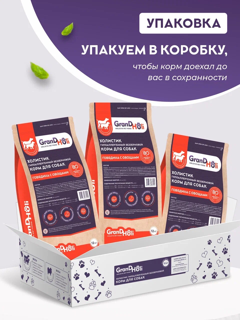 Сухой корм для собак крупных и средних пород GRANDHOLI "Говядина с овощами" 12 кг информация: