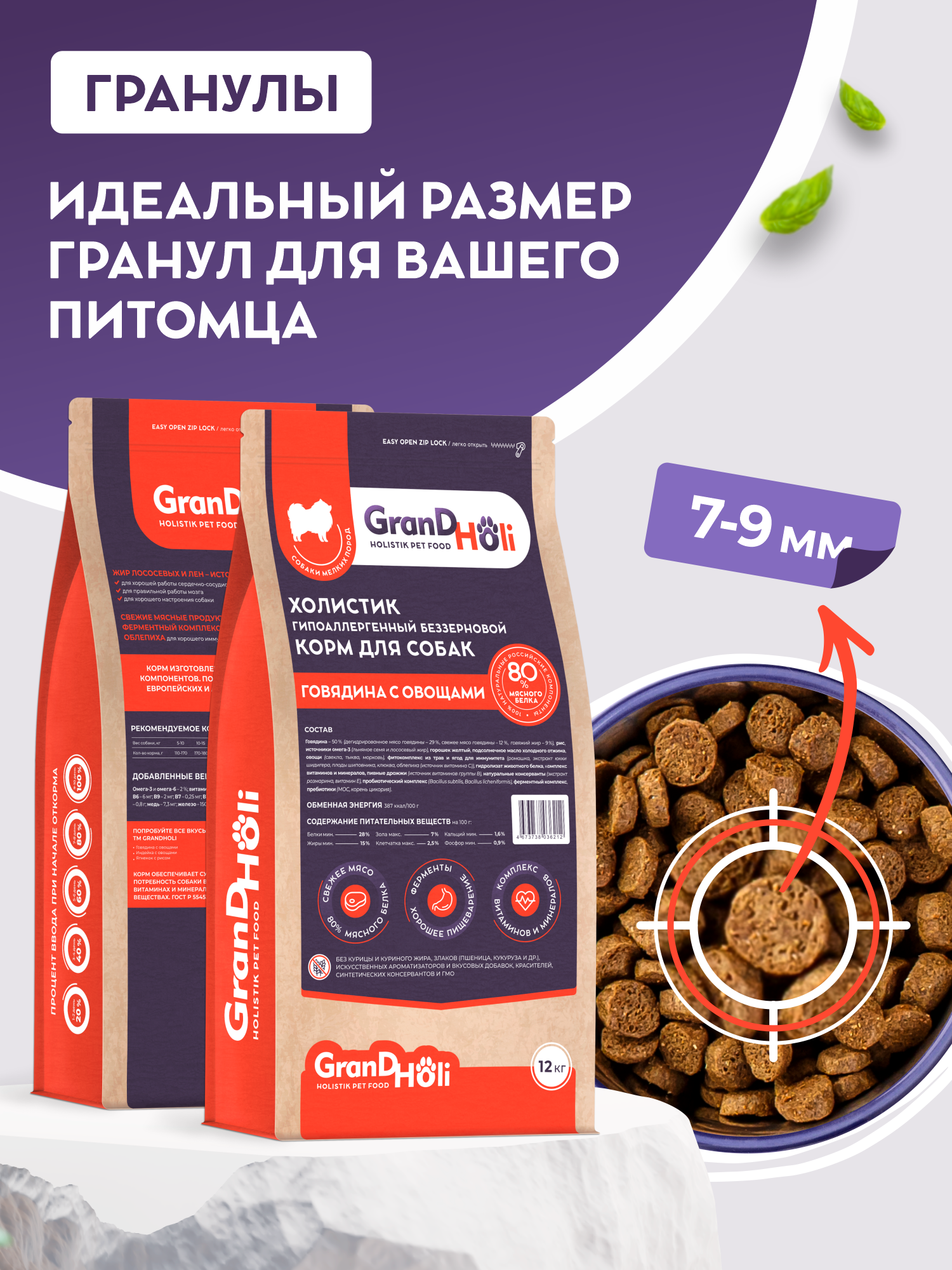 Сухой корм для собак мелких пород GRANDHOLI "Говядина с овощами" 12кг информация: