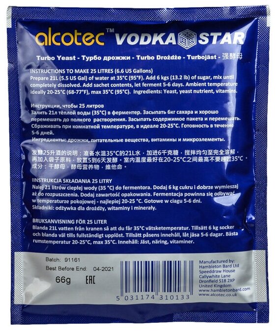 | Дополнительная информация | одна пачка рассчитана на 25 литров браги |